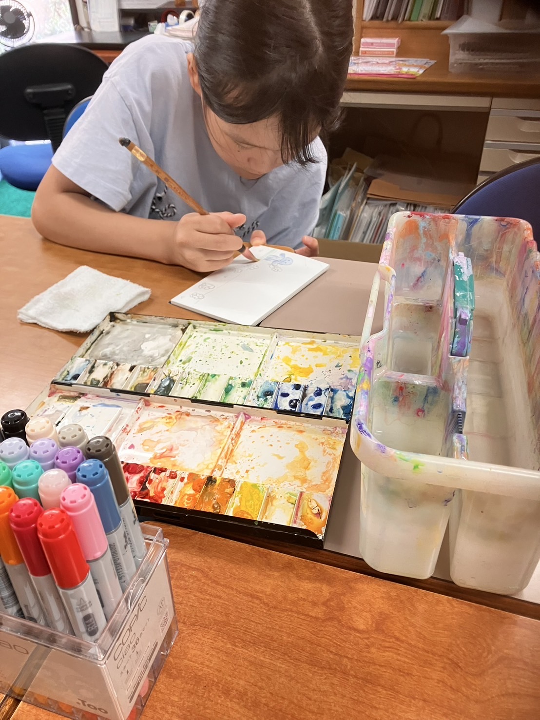 マイルドライナー、コピックを使用したイラストと、同じモチーフを透明水彩を使って描きました。