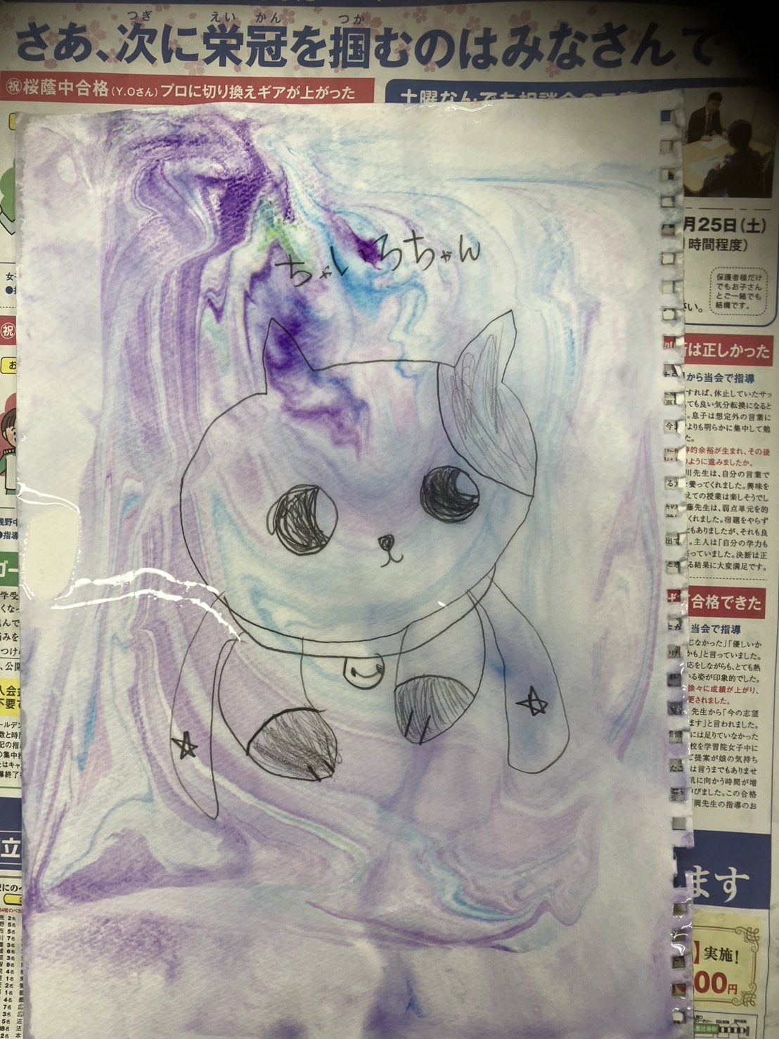 その後は画用紙に自由に絵を描いて、それもマーブリングの世界へダイブ! ある男の子の絵がまたとっても素敵だったのですが、こちらも撮りそびれてしまいました😢 心の目にはしっかり焼きついています…!