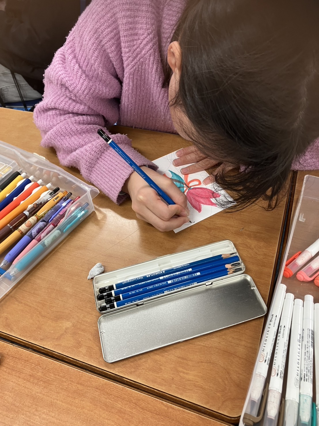 もう1人の参加者さんは「絵が描きたい」と、はじめはマイルドライナーを使ってひとり黙々と制作タイム。描いていたのはクラゲ🪼 しかも、かわいいだけじゃなくて、実在するクラゲたちをモチーフにしたリアル路線。こだわりがすごい…!